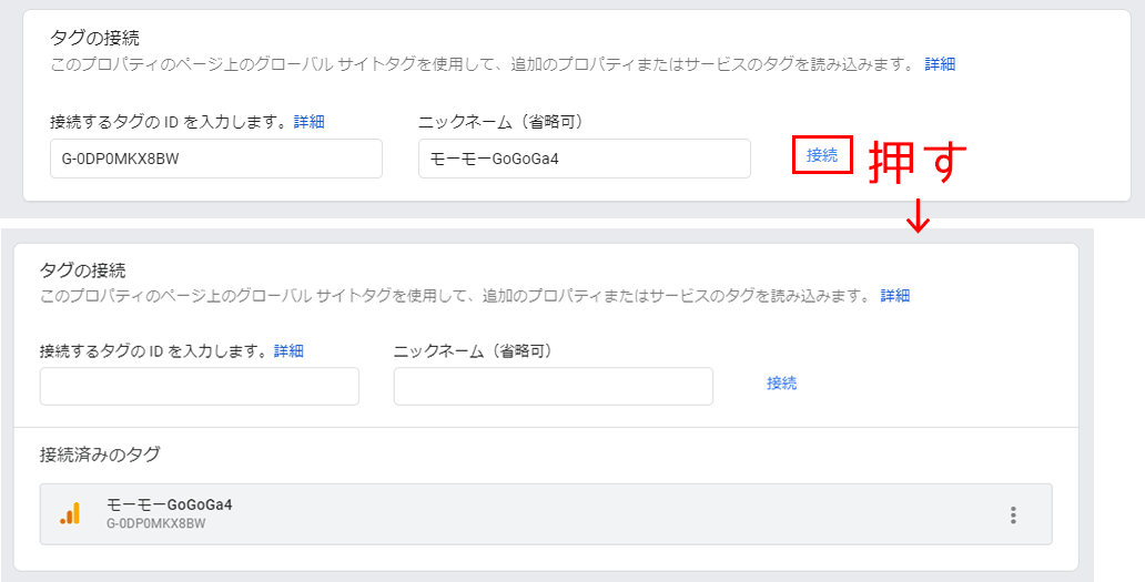 4.この測定 ID「G-xxxxxxxxxxxx」を接続します。