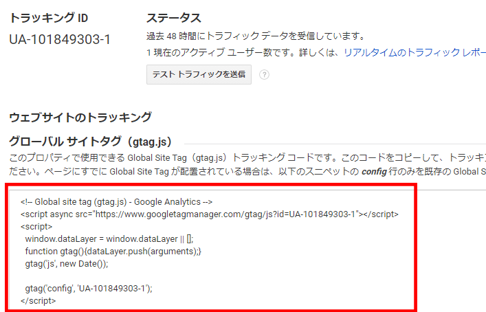 よく見たら上記3.に「[グローバル サイトタグ(gtag.js)]」って書いてあるんですよね。