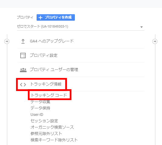 そこで一度、現GAプロパティ(UA-で始まる方)に戻り、「GAへのアップグレード」を押します。