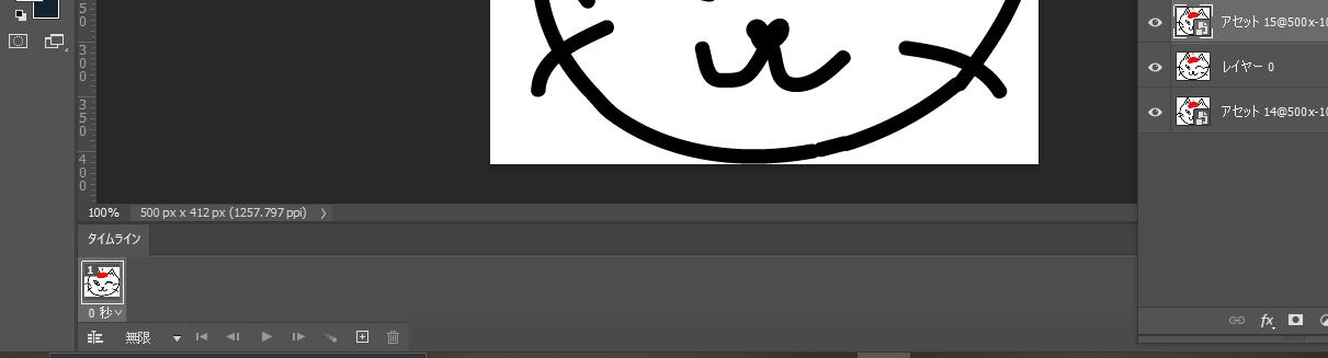 タイムラインにレイヤー画像がでる。