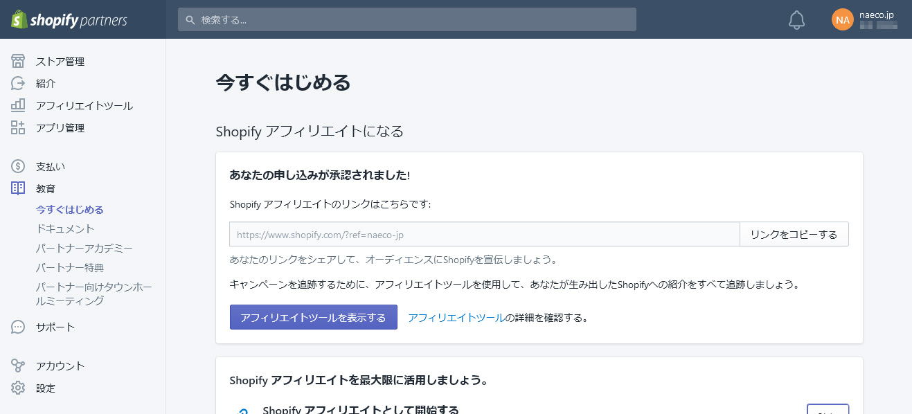 認定試験を受けることもでき、試験に合格するとShopifyパートナーの管理画面に認定書が表示されます。